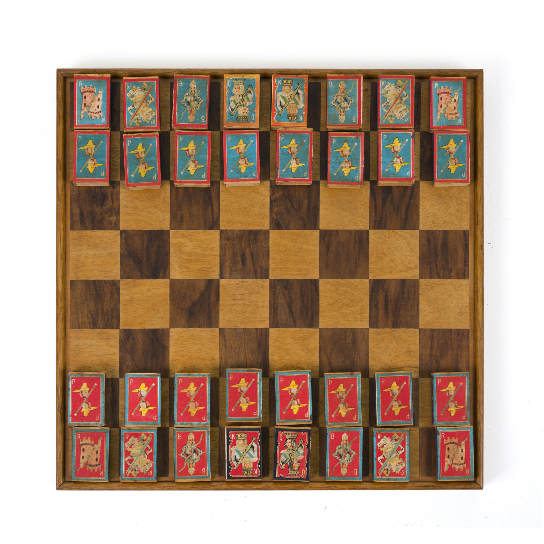 Completa di scacchi raffigurati su scatole di fiammiferi Saffa.