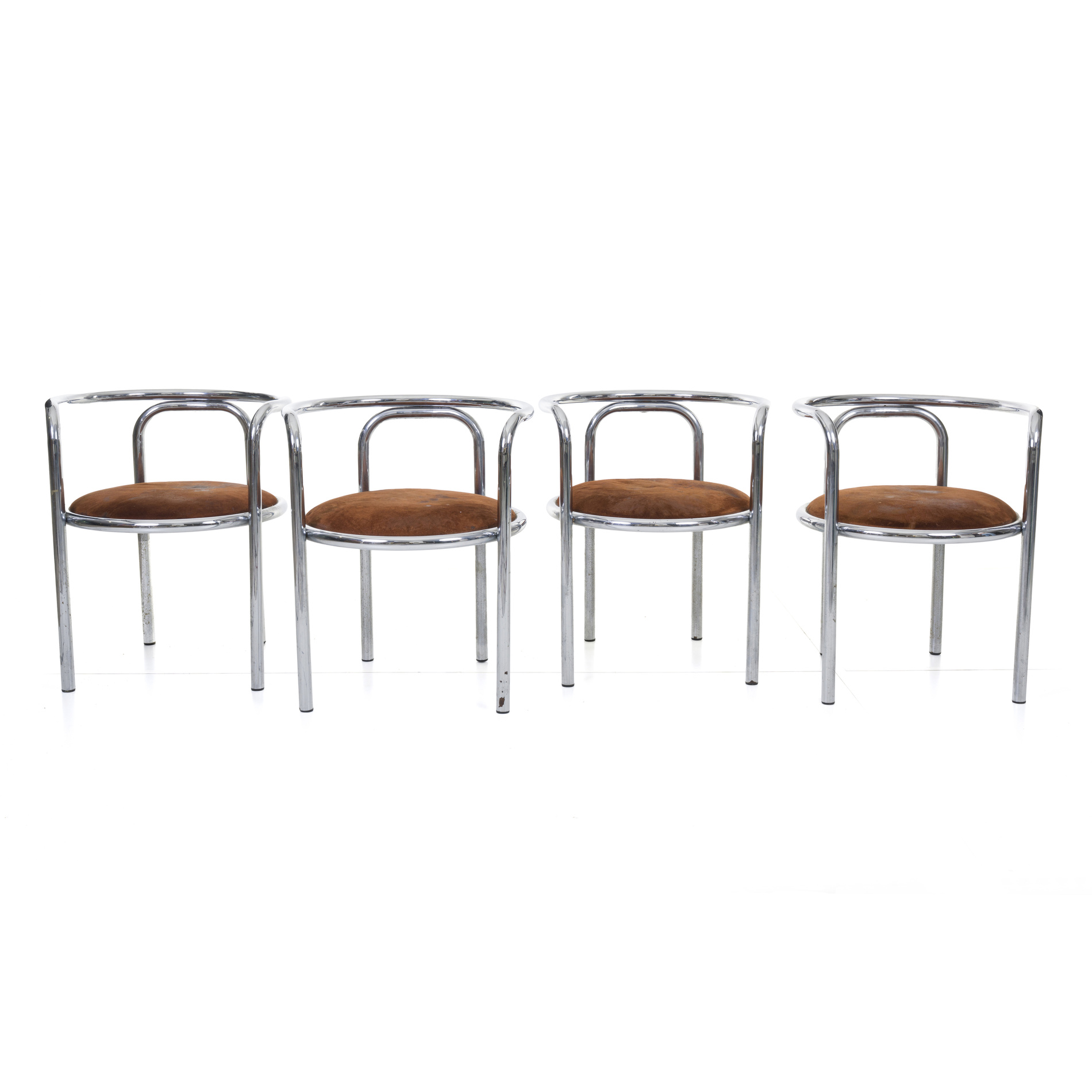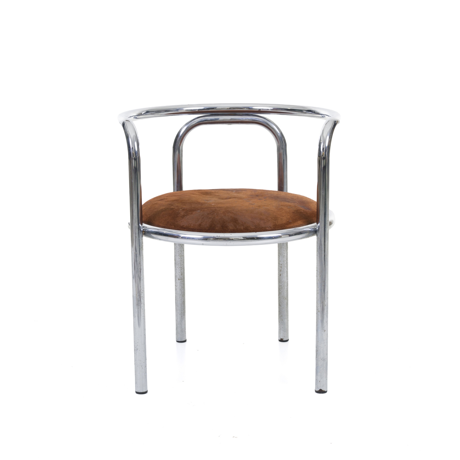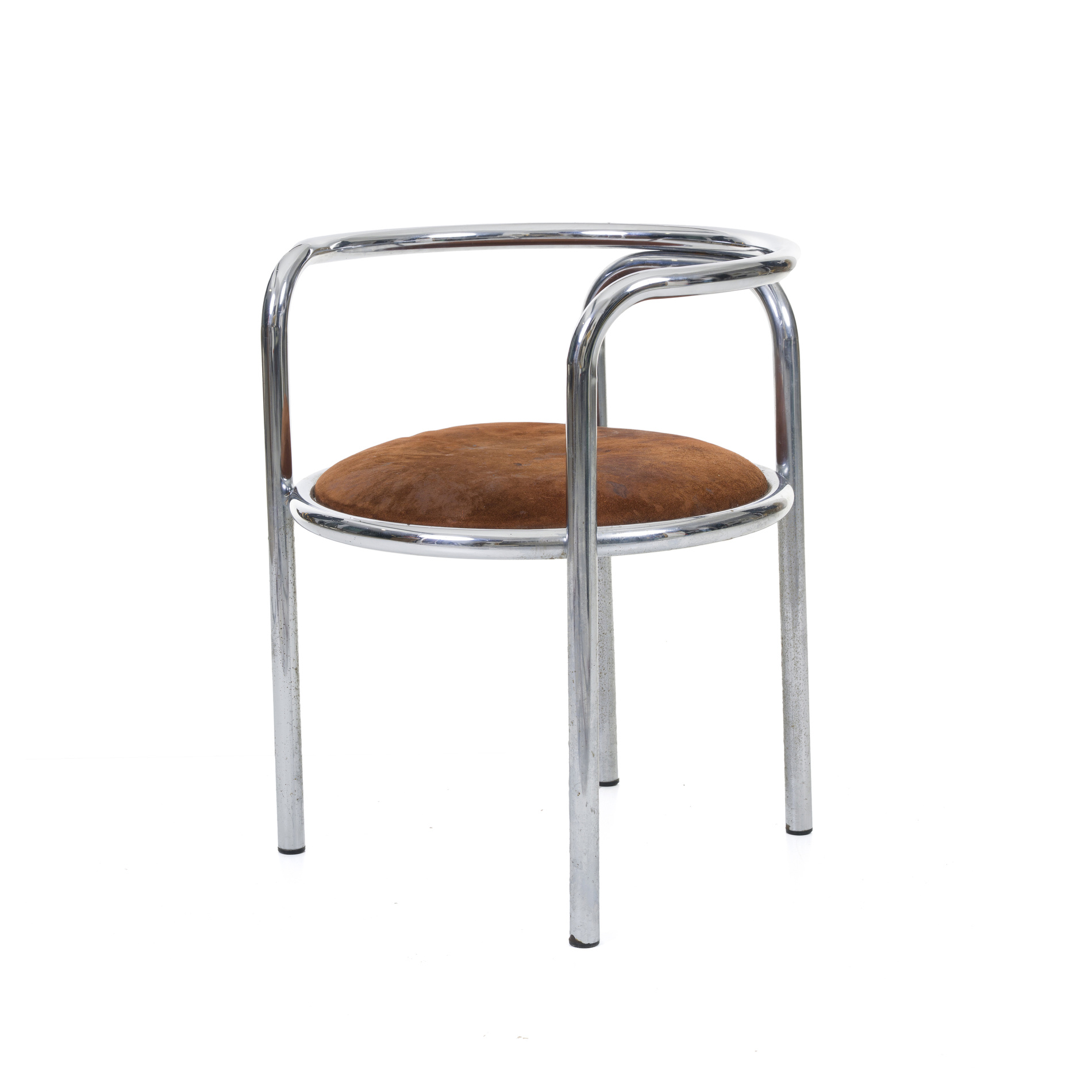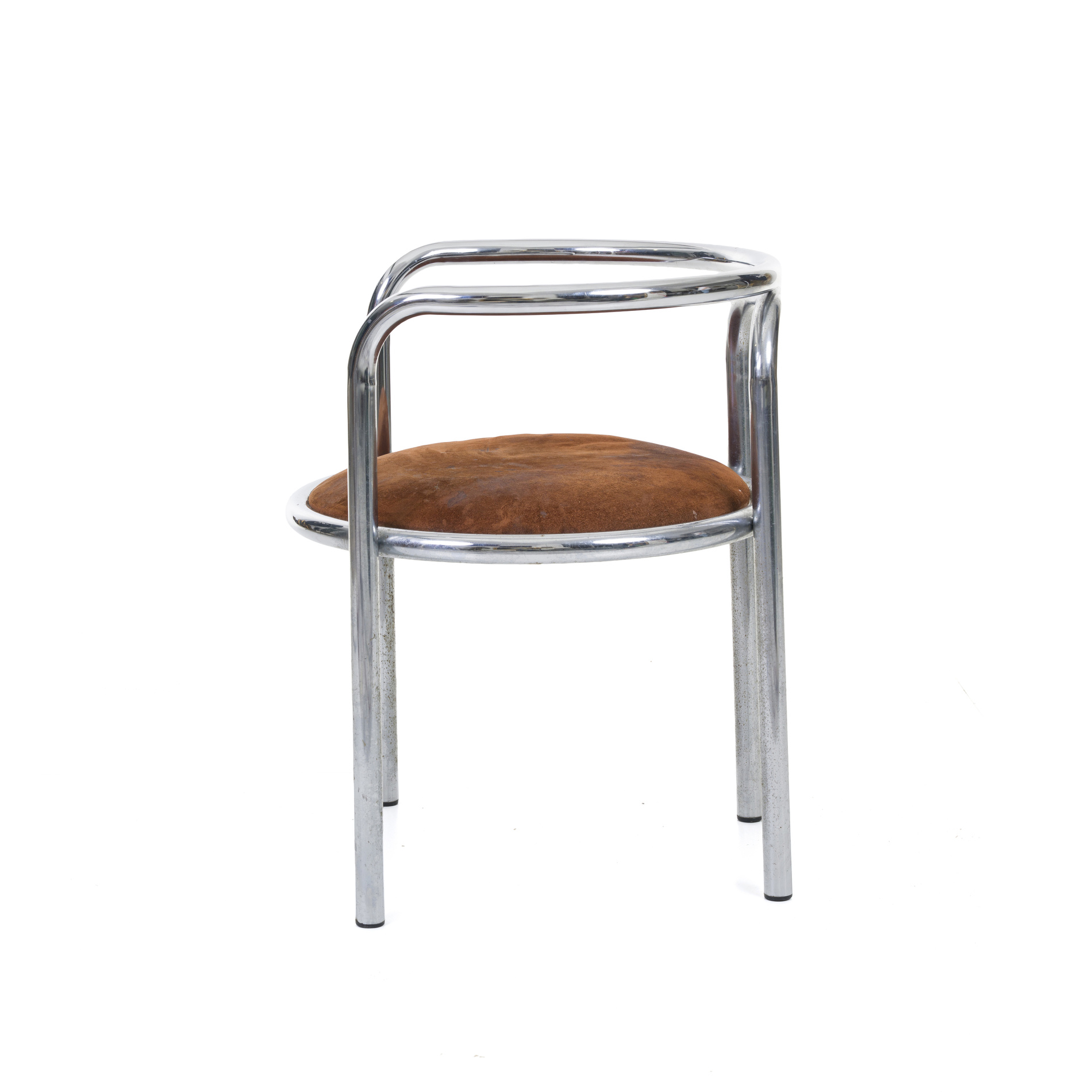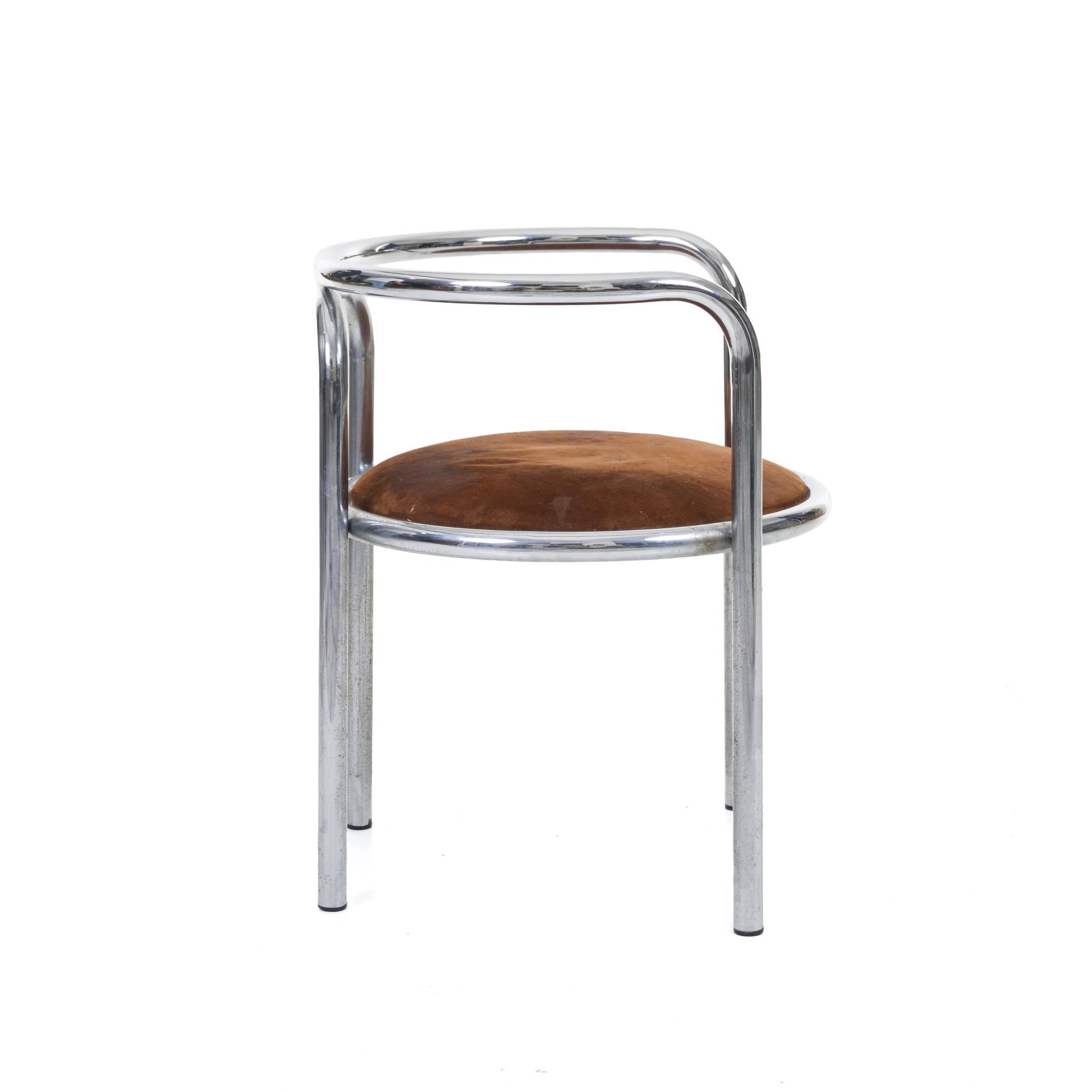 Struttura tubolare in metallo cromato, sedute in camoscio