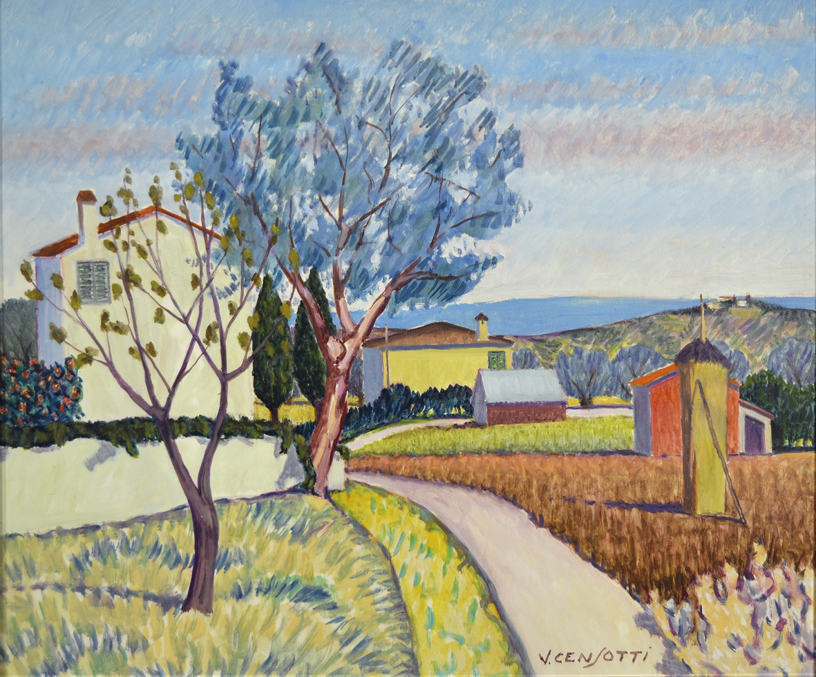 CENSOTTI VINCENZO Foiano della Chiana 1913 - Treviso 2005 Paesaggio olio su tavola 50x60 firma in basso a destra timbro dell'Autore al retro