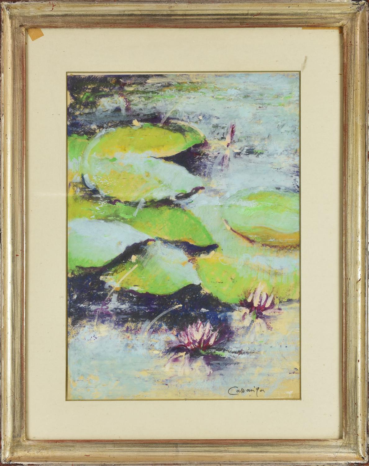 Giancarlo Cazzaniga (1930 - 2013) NINFEE pastelli su carta, cm 49,5x34 firma