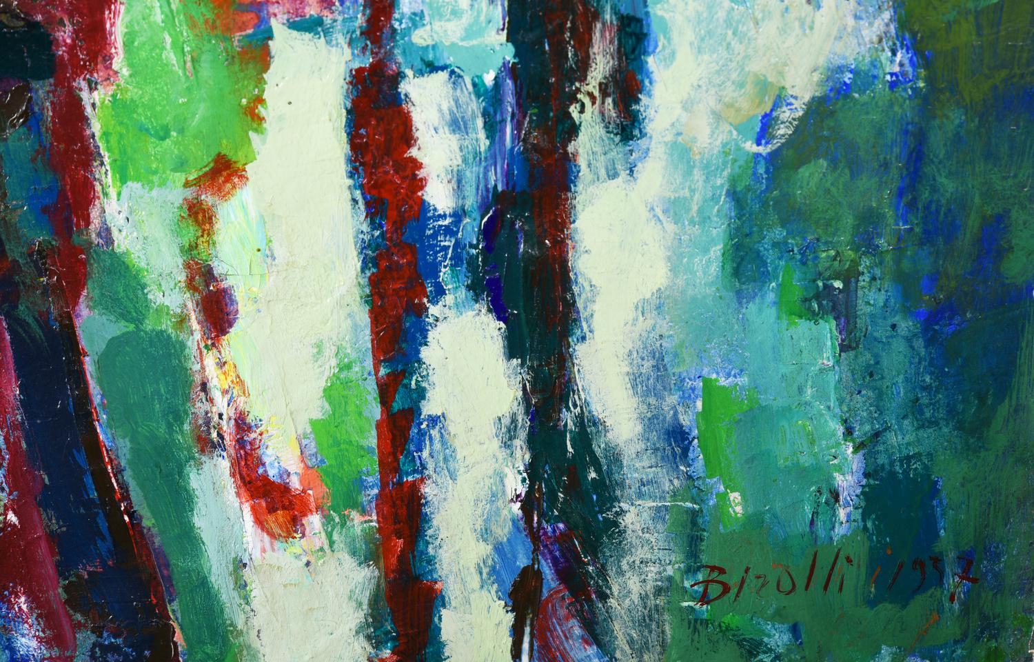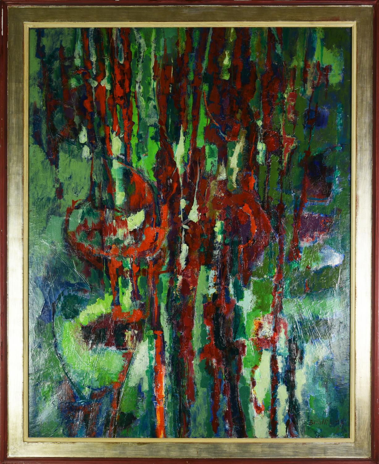 Renato Birolli (1905 - 1959) ALBERI SUL VERDE, 1957 olio su tela, cm 115x89...