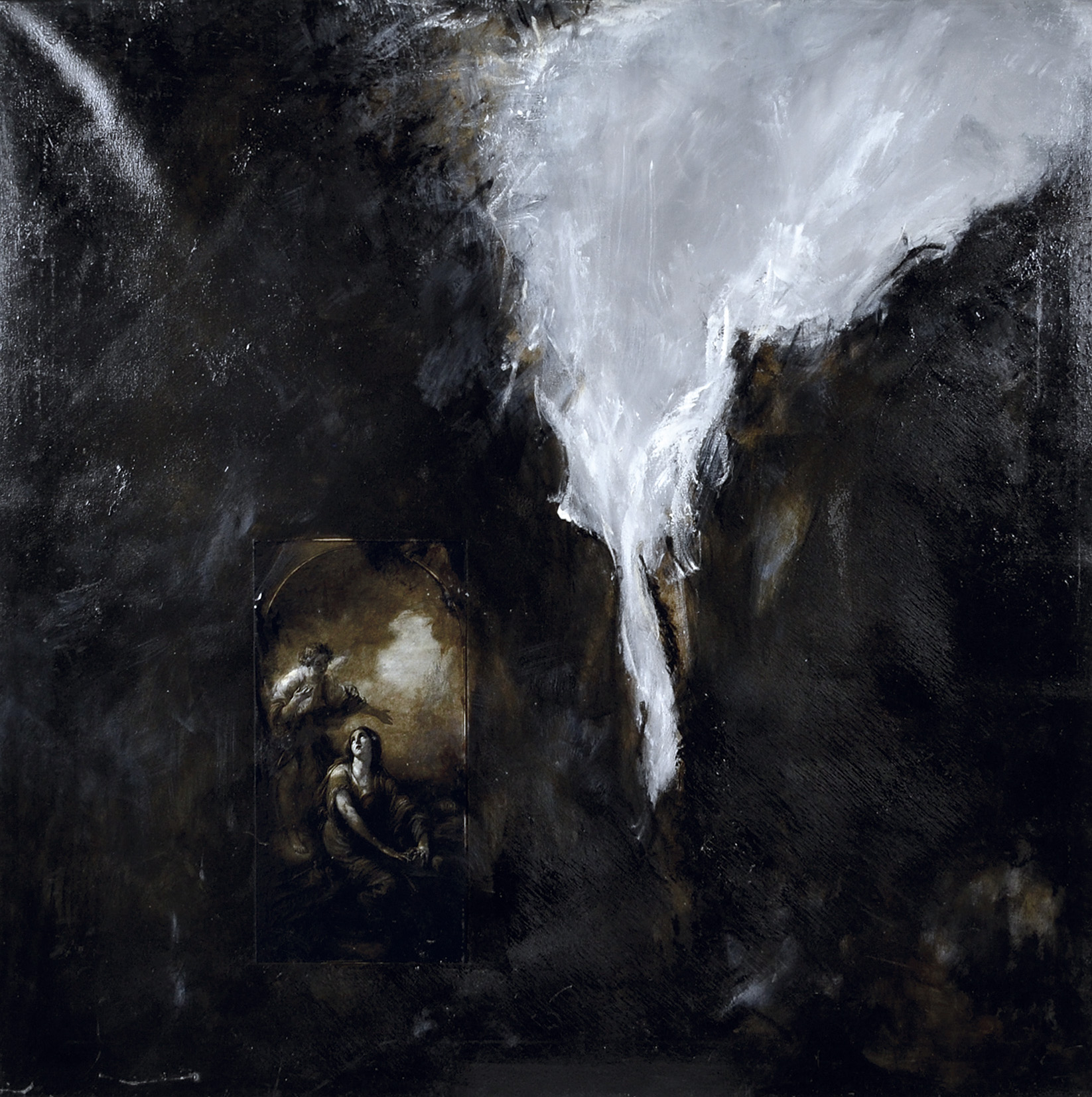 TIGELLI ROBERTO Trieste 1950 Apparizione 2002 olio su tela 90x90 firma e data al retro