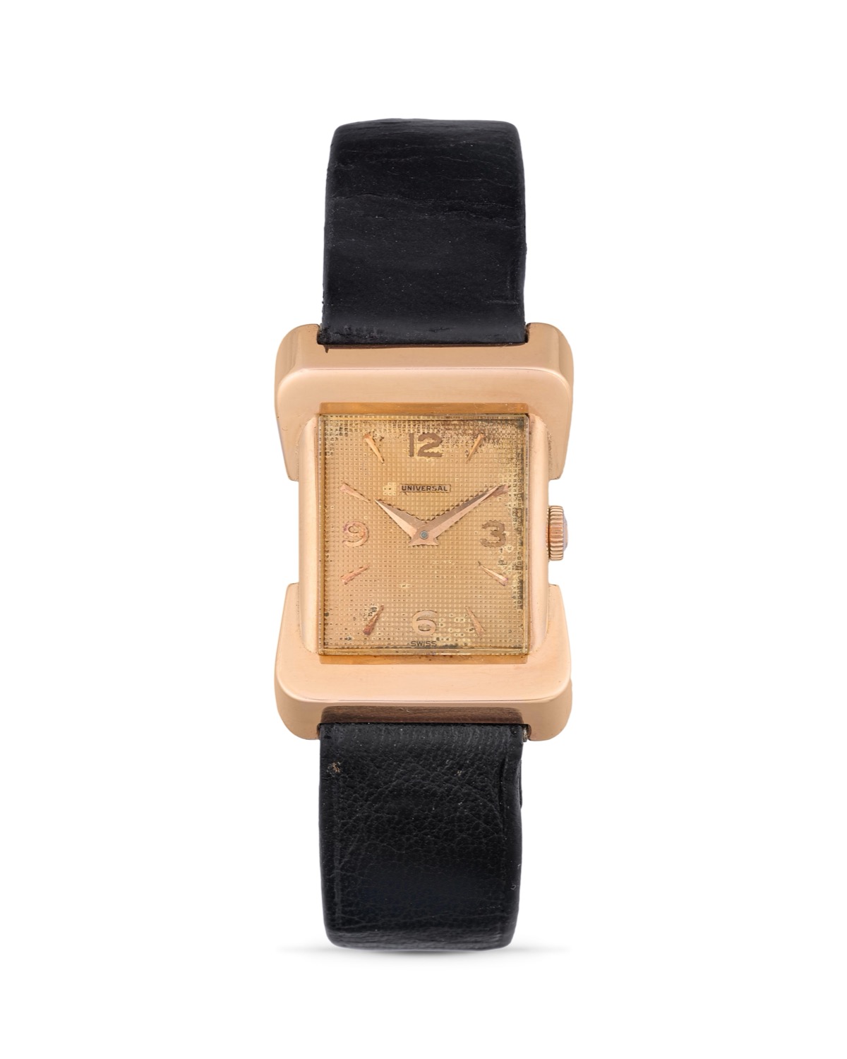 Cinturino Universal Genève in pelle e fibbia Universal Genève dorata.