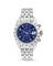 Quadrante blu con finitura flinqué, numeri arabi dipinti.