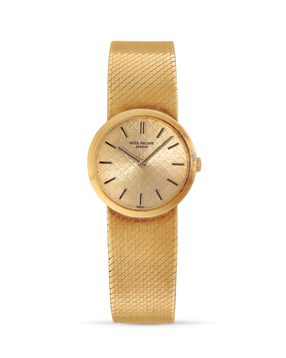 Bracciale integrato Patek Philippe con finitura a maglia in oro 18k.