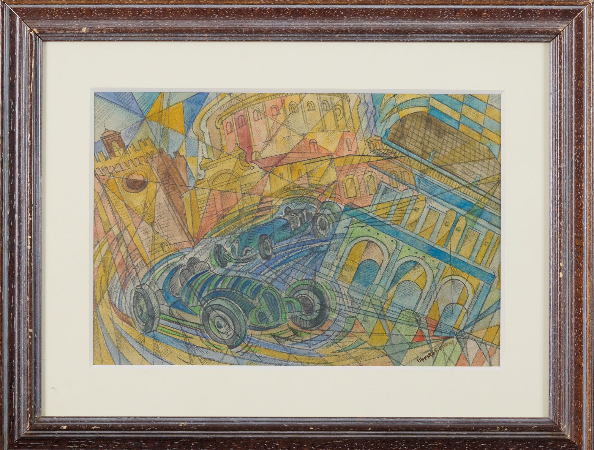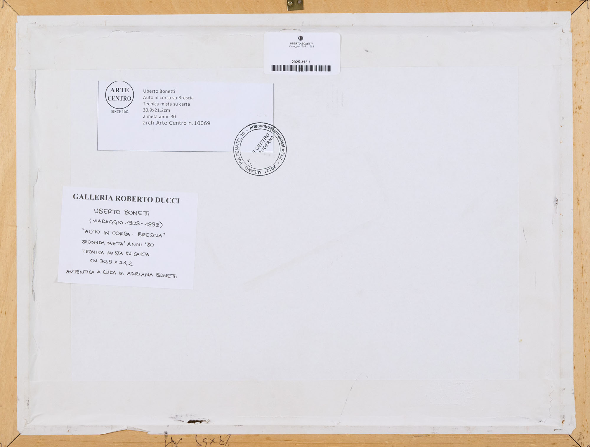 Uberto Bonetti (Viareggio, 1909 - 1993) Auto in corsa - Brescia Seconda metà...