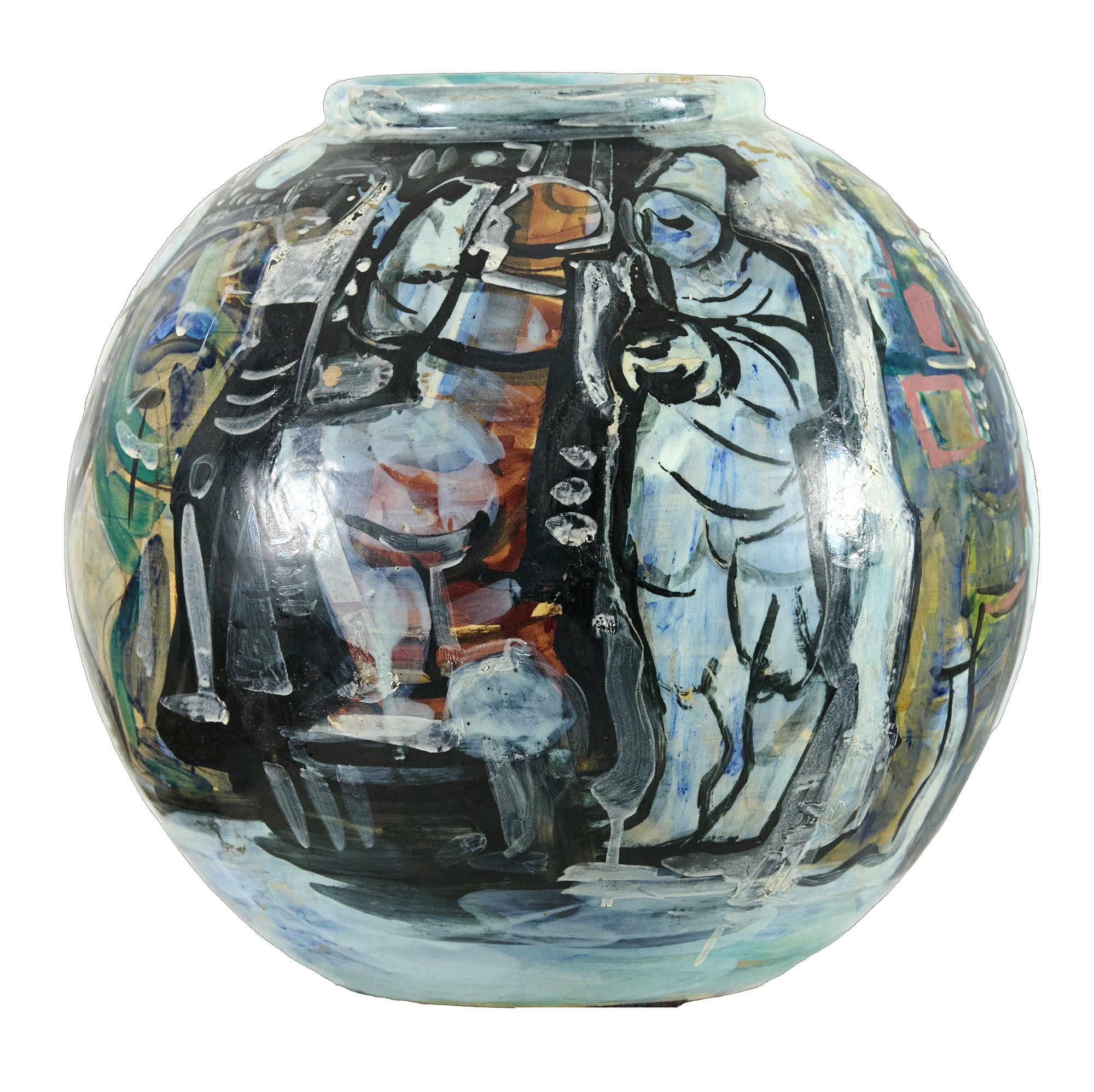 Emilio Scanavino (Genova, 1922 - Milano, 1986) Terracotta policroma h. cm....