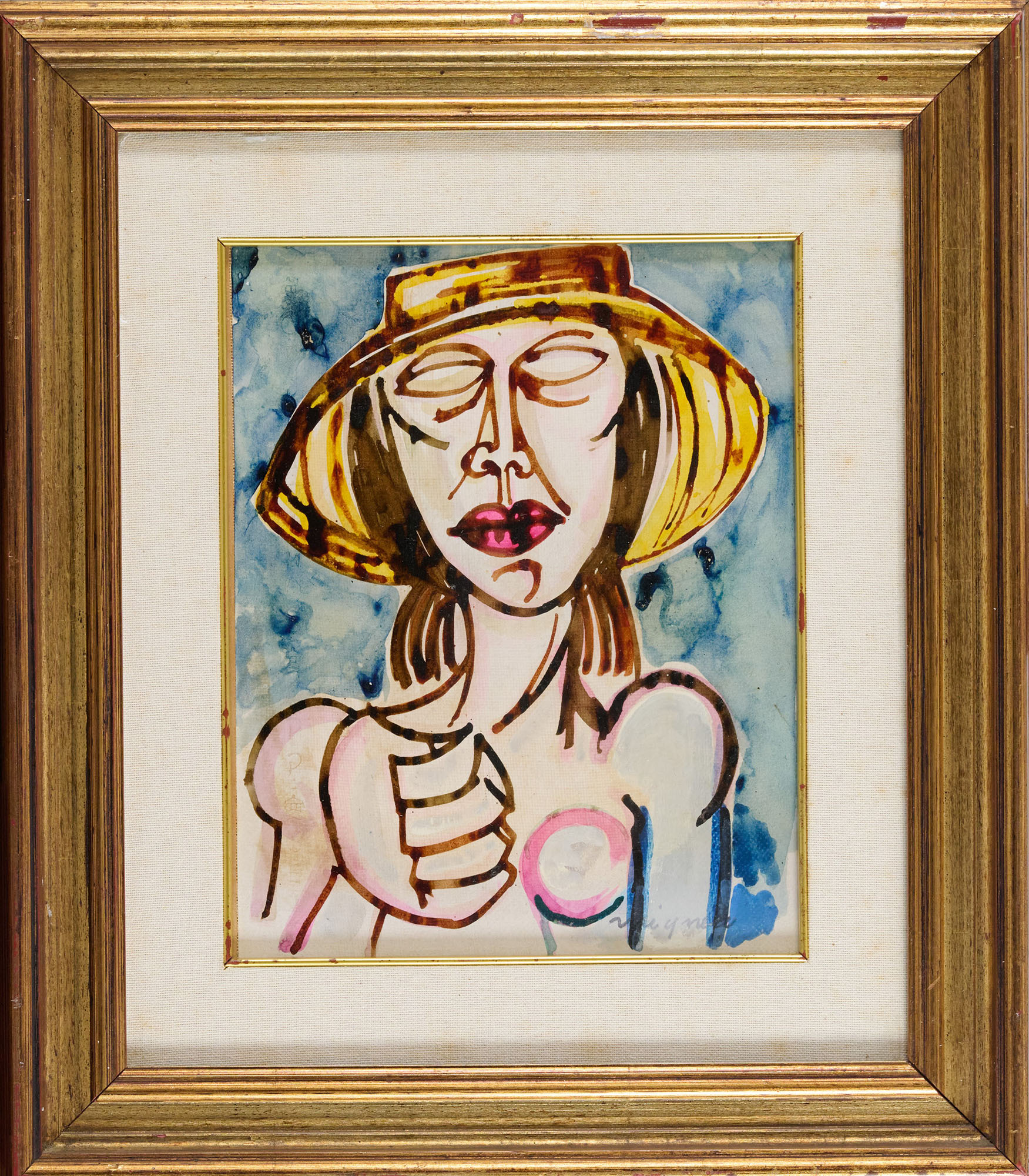 Giuseppe Migneco (Messina, 1908 - Milano, 1997) Figura China acquerellata su...