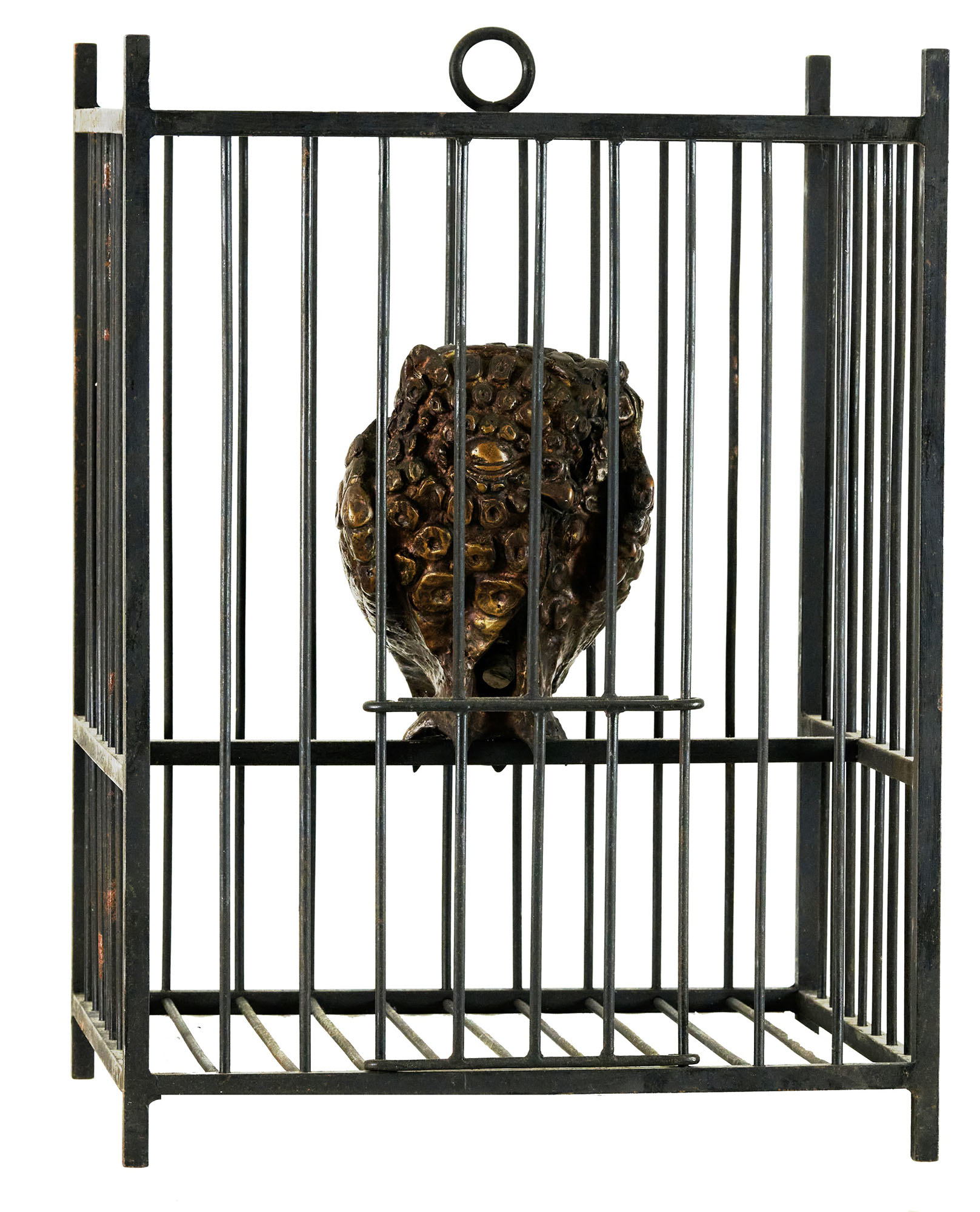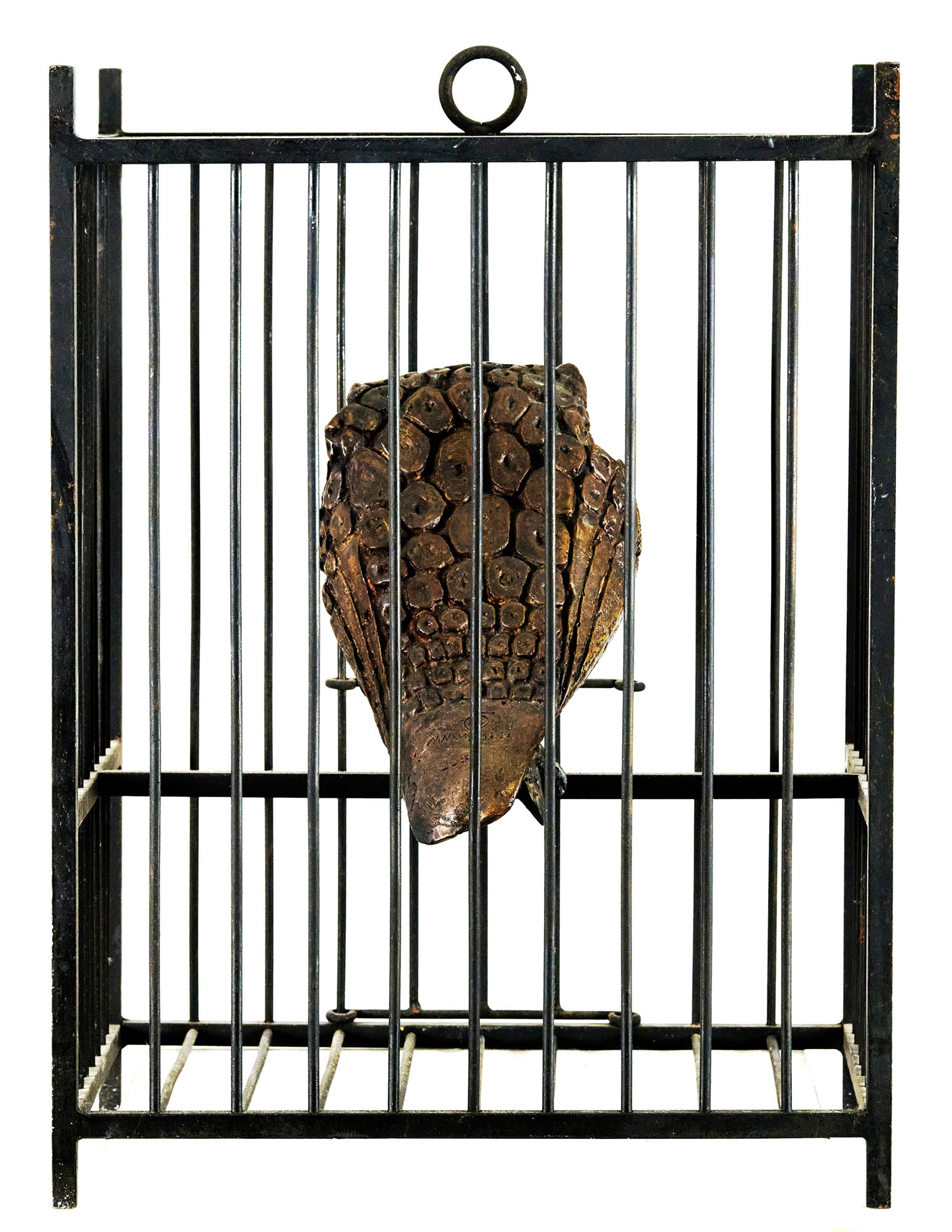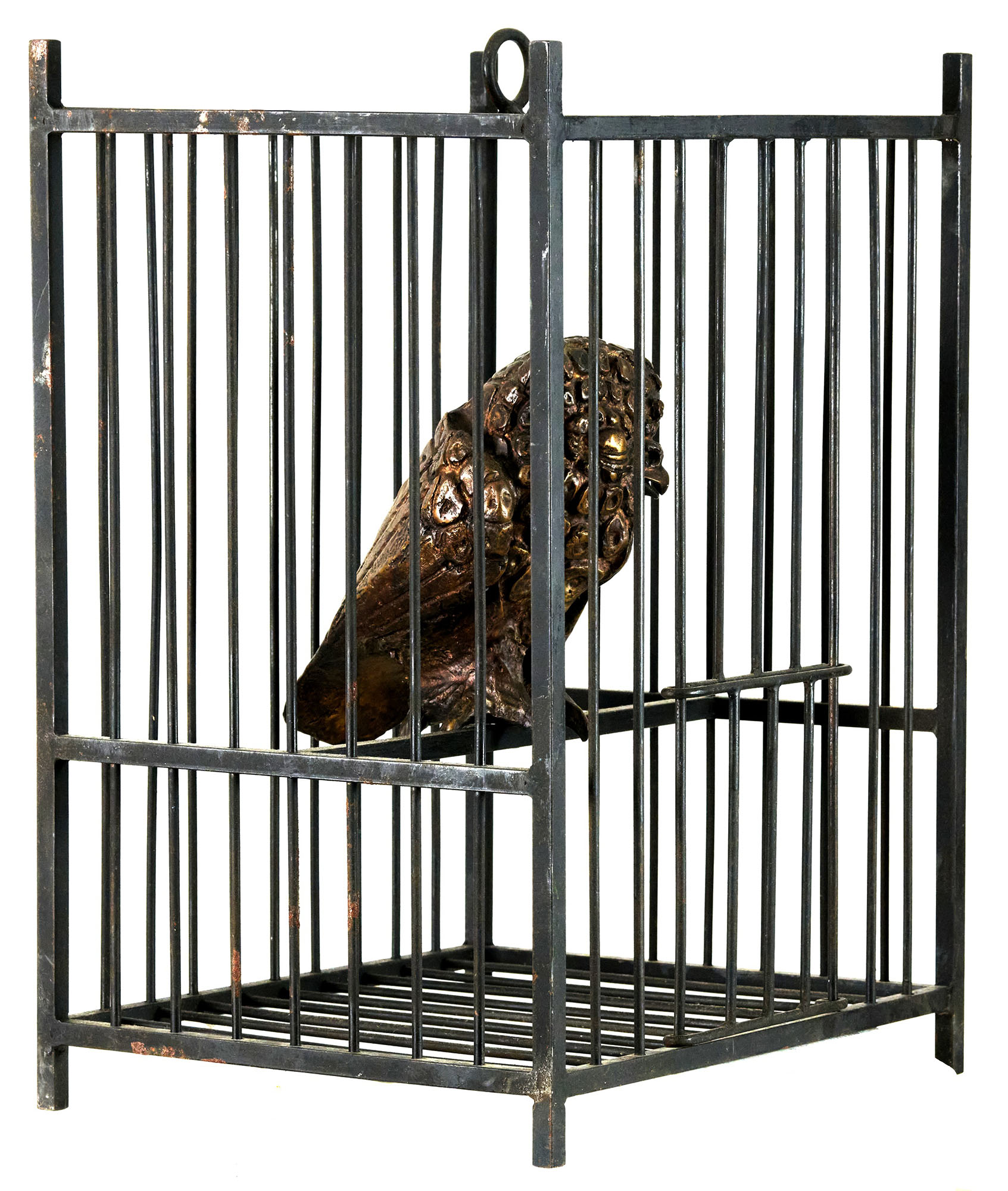 Luciano Minguzzi (Bologna, 1911 - 2004) Civetta in gabbia Bronzo cm. 63x37x47...