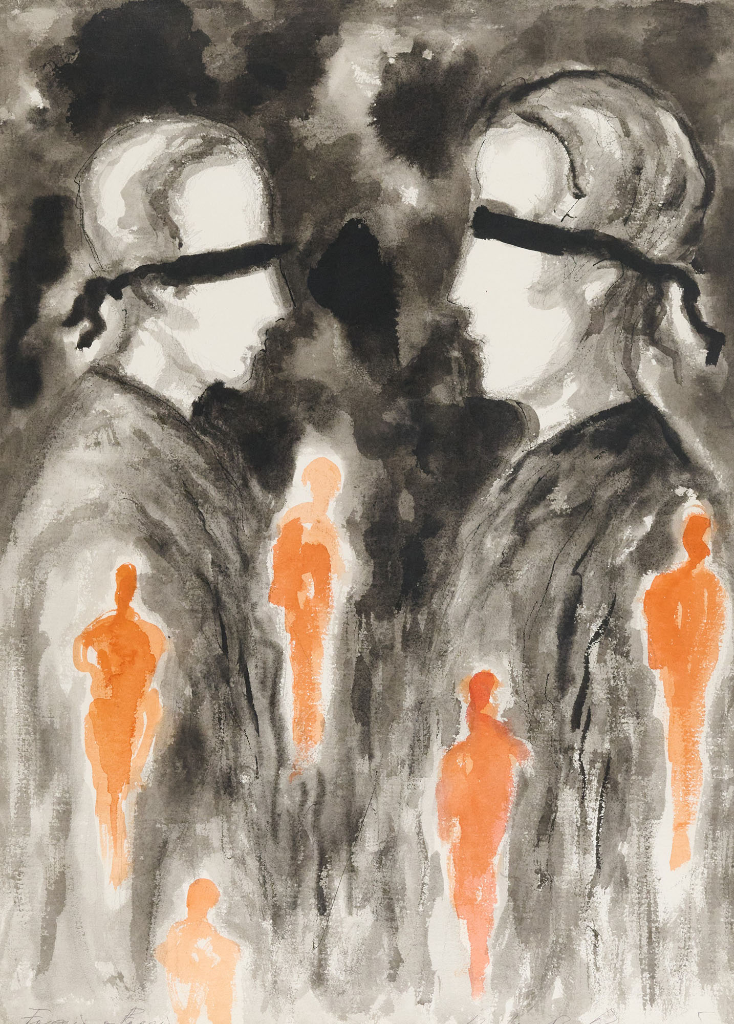 Roberto Barni (Pistoia, 1939) Faccia a faccia Tecnica mista su carta cm....