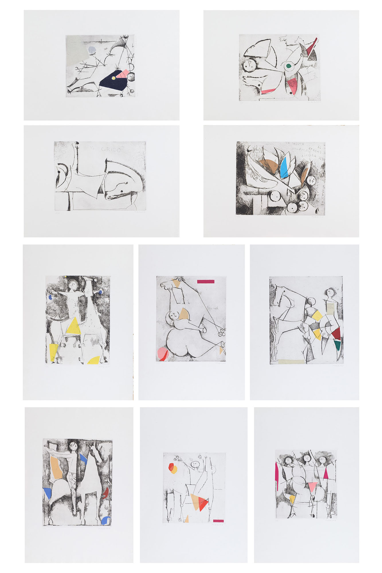 Cartella completa di 10 acqueforti e acquatinte di cm. 70x50, entro custodia originale.