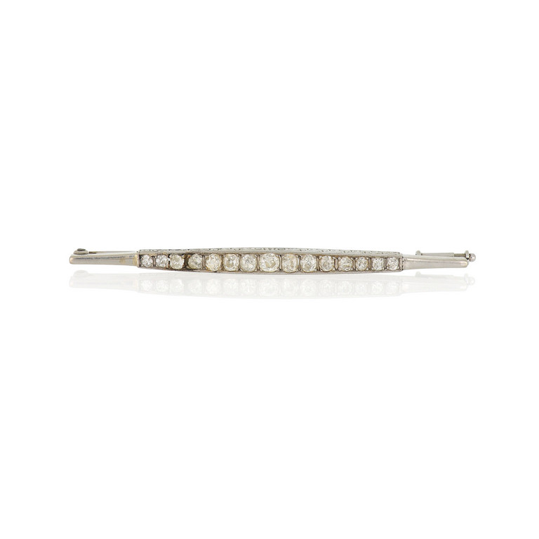 Spilla a berretta in platino finemente incisa e decorata con diamanti taglio antico a scalare di ct. 2 0 ca.