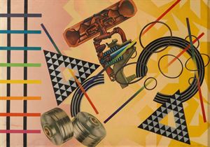 PHILLIPS PETER Birmingham 1937 Senza titolo 1974 Serigrafia e collage su carta telata 70x100 cm Firma e data in basso a destra Screen printing and collage on linen paper Signed and dated lower right