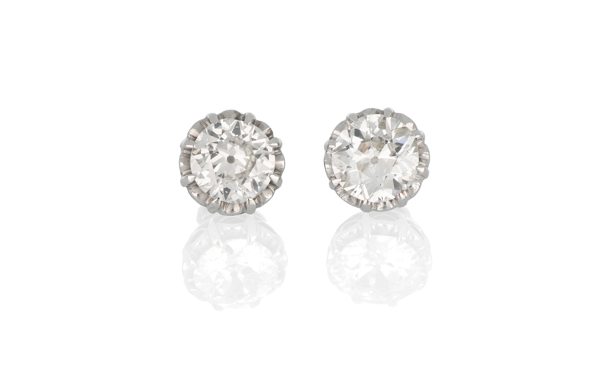 Orecchini tappabuco in oro bianco con due diamanti di forma rotonda taglio antico di stimati 2 40 ct cadauno