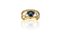 Anello fantasioso con gambo sdoppiato al centro uno zaffiro taglio ovale di ct. 1 20 ca accompagnato da piccoli diamanti taglio brillante.