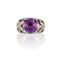 Anello a fascia in oro basso titolo e argento decorato con un'ametista taglio briolet e piccoli diamanti taglio rosa.