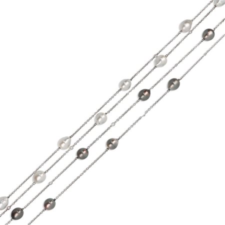 Doppia collana in oro bianco con perle coltivate south sea grigie e nere intervallate da castoni con diamanti di forma rotonda taglio a brillante per stimati 1 60 ct complessivi.