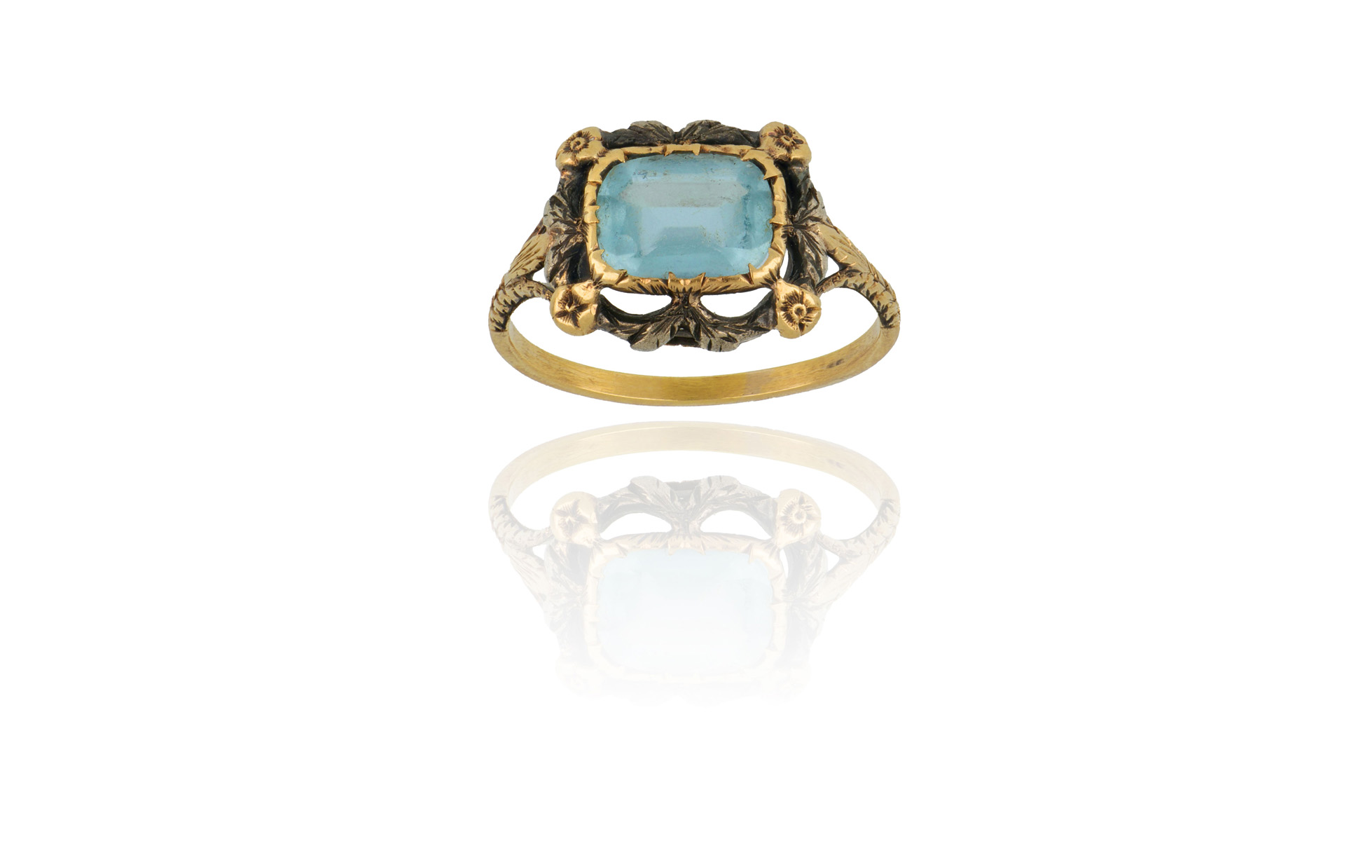 Antico e delicato anello in oro rosso di epoca vittoriana con pietra azzurra