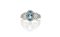 Anello in oro bianco con intensa acquamarina taglio ovale di ct. 3 0 ca. e 12 piccoli diamanti taglio brillante disposti ai lati per ct. 0 30 ca.