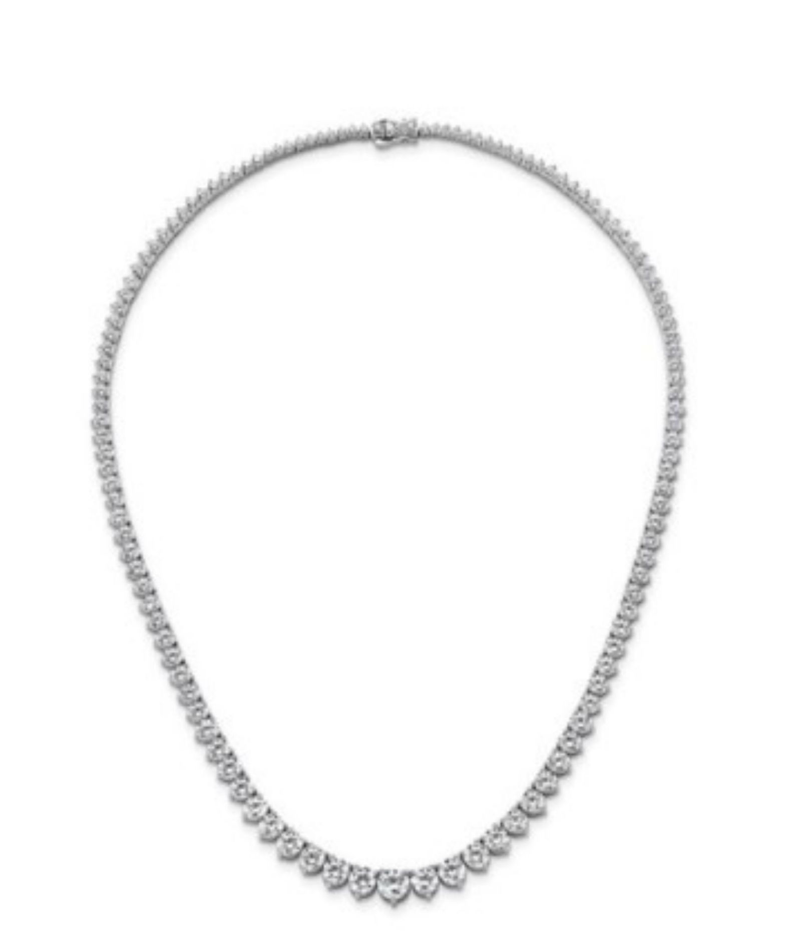 COLLANA TIPO TENNIS IN ORO BIANCO 14K CON DIAMANTI LAB GROWN A SCALARE TAGLIO BRILLANTE PER 10,00 CT COLORE E-F PUREZZA VS - 206/W GRADUATING - COMMISSIONE D’ASTA 25%