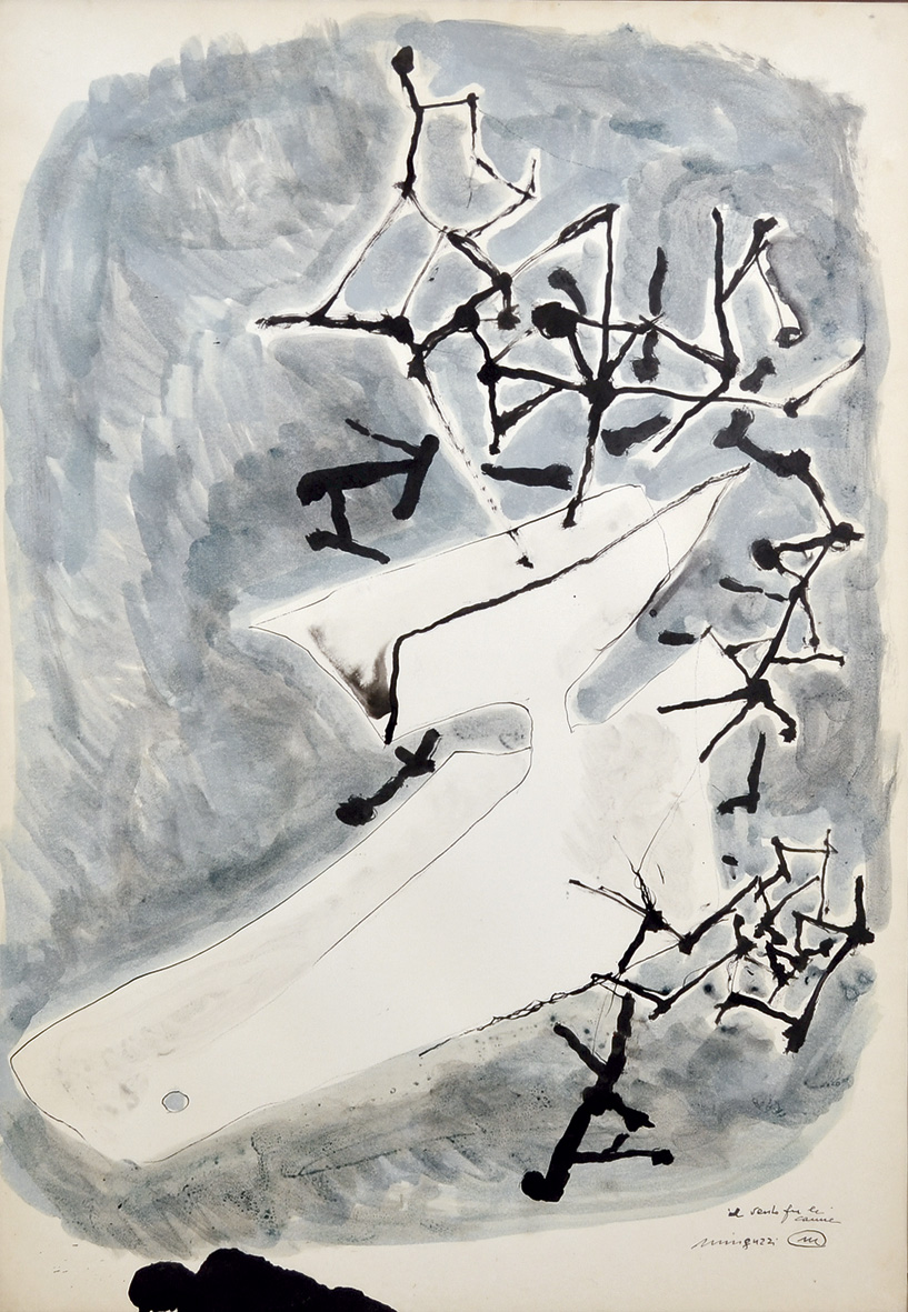 MINGUZZI LUCIANO Bologna 1911 - Milano 2004 Il vento fra le canne tecnica mista su carta 100x70 firma e titolo in basso a destra