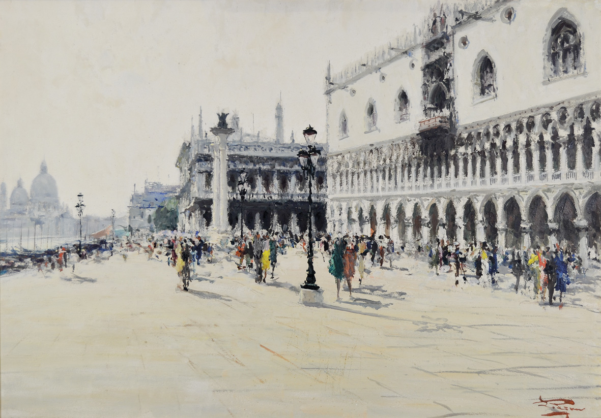 PAGAN LUIGI Chioggia 1907 - 1980 Piazzetta San Marco olio su tela 70x100 firma in basso a destra