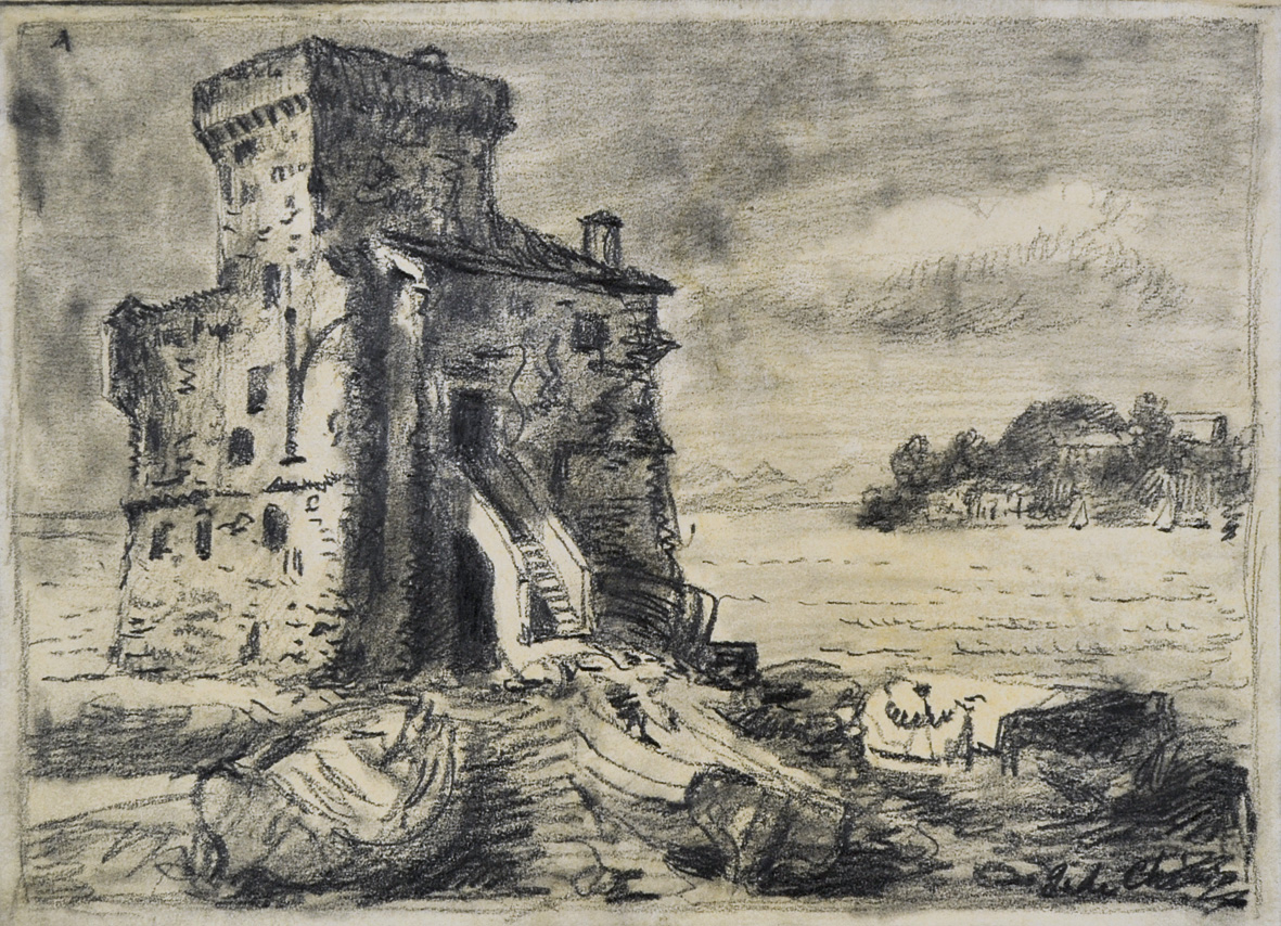 DE CHIRICO GIORGIO Volos 1888 - Roma 1978 Il castello di Rapallo 1947 disegno...