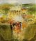 GELINDO CRIVELLARO, "Paesaggio ascolano", olio e tecnica mista su tela, cm 80x70. Al fronte: firma in basso a destra. Al verso: firma, titolo e dimensioni. Opera senza cornice