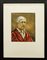 GIORGIO DE CHIRICO, "Autoritratto con casacca rossa", ripreso dal dipinto del 1960, stampa dell'opera originale di Giorgio De Chirico del 1935 , tavola 31, dim 40x55 cm. Al verso: dettagli del quadro originale. Opera con cornice.
