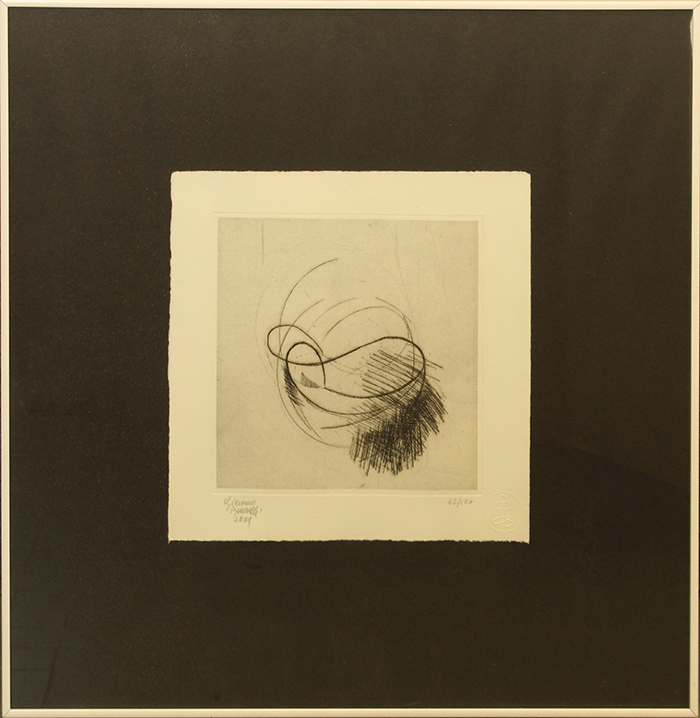 GIACOMO BENEVELLI, 2009, incisione su cartoncino, cm 26x26, con cornice cm 50x50x2, peso 2,20 kg, esemplare 42/100. Al fronte: tiratura e timbro in basso a destra e firma e anno in basso a sinistra. Opera con cornice.