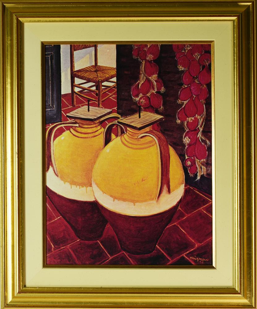 Giuseppe Migneco LE ANFORE stampa su tela, cm 40x30 firma e data in lastra