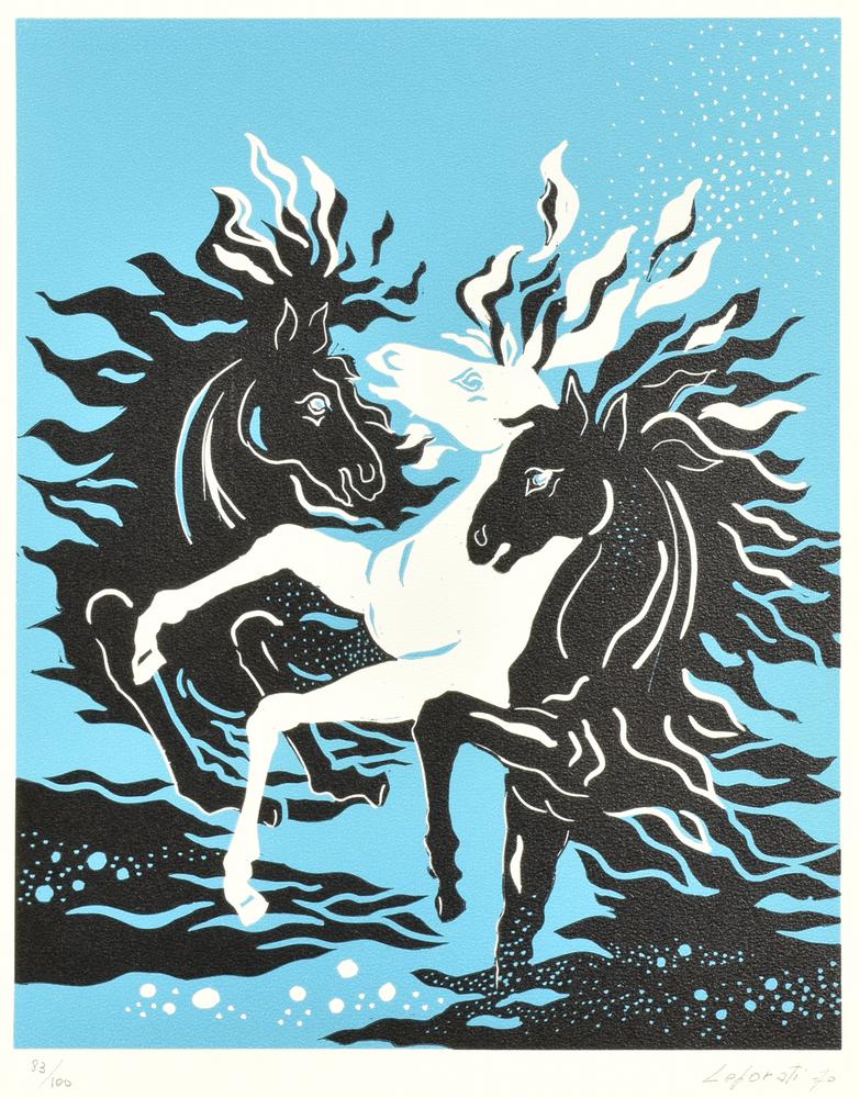 Lotto 68 | Leporati CAVALLI incisione su carta, cm 33,5x26; es. 83/100 firma e data...