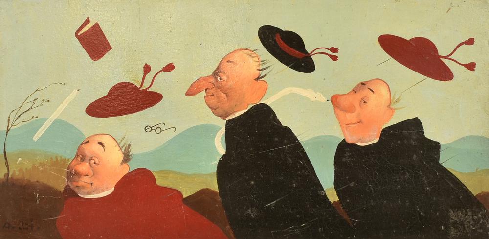 Piero Ardito CARICATURE olio su compensato, cm 19,5x40 firma Lievi difetti