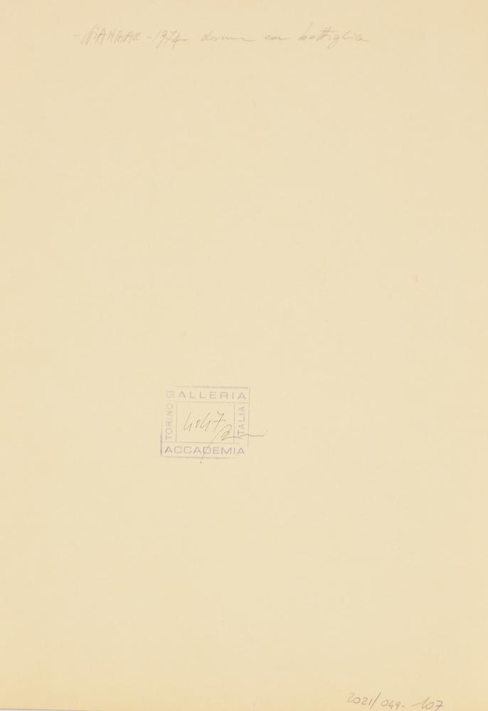 GIANBAR (Gianni Baretta) DONNA CON BOTTIGLIA china su carta, cm 50x35 firma...
