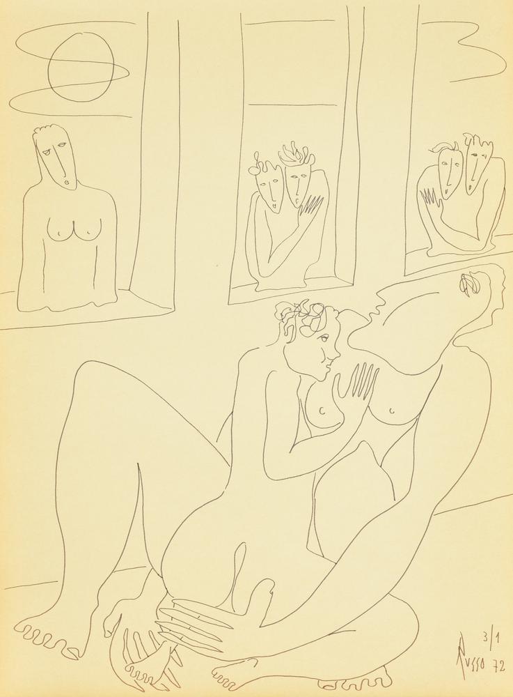 Lotto 68 | Russo VOYERISMO pennarello su carta, cm 40x30 firma e data eseguito nel 1972