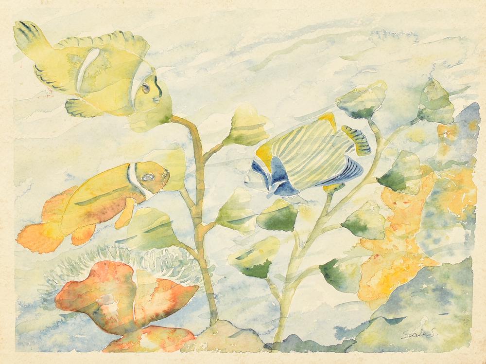 S. Scala IN FONDO AL MARE acquerello su carta, cm 28,5x38 firma L'opera...
