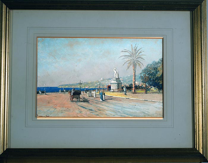 Autore non identificato XIX secolo Piazza Vittoria tecnica mista su carta, cm 17x27 firmato e datato in basso a destra: ...Napoli 1901