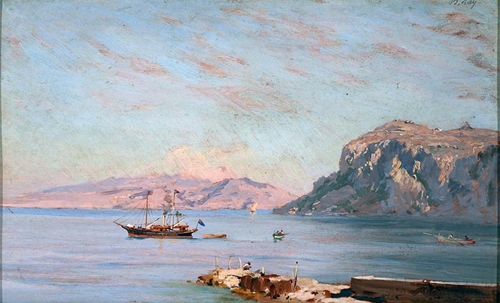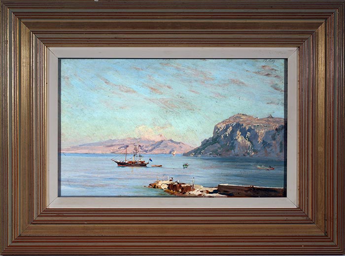 Bernard Hay (Firenze 1864 - dopo il 1916) Marina olio su tavola, cm 21x35 firmato in alto a destra: B. Hay
