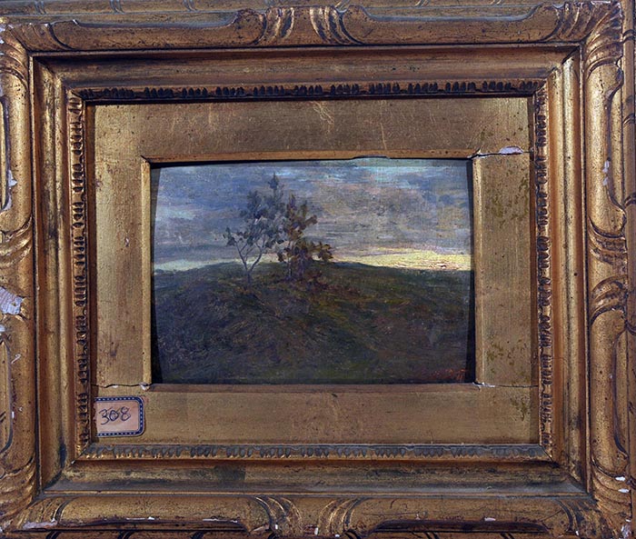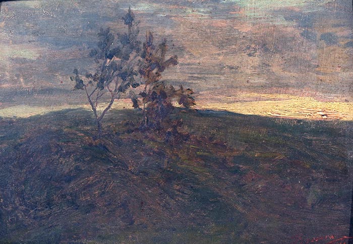 Rossano Federico (Napoli 1835 - 1912) Campagna olio su cartone, cm 13x18 firmato e datato in basso a destra: Rossano 89