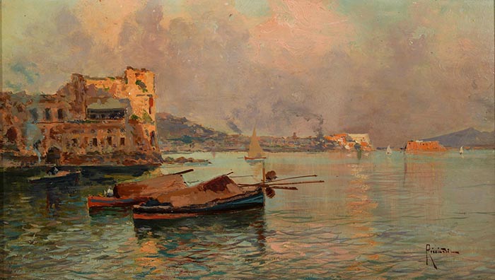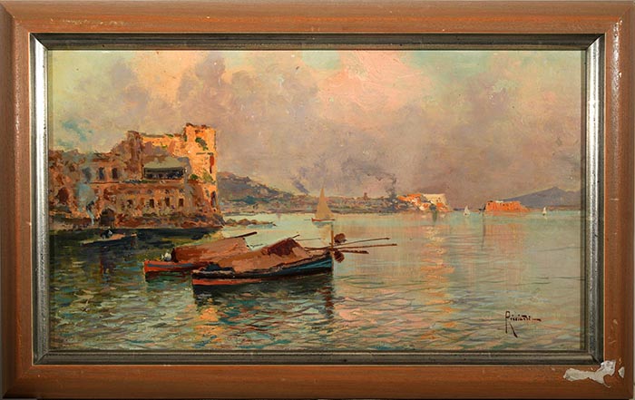 Ricciardi Oscar (Napoli 1864 - 1935) Golfo di Napoli olio su cartone, cm 21x36 firmato in basso a destra: Ricciardi