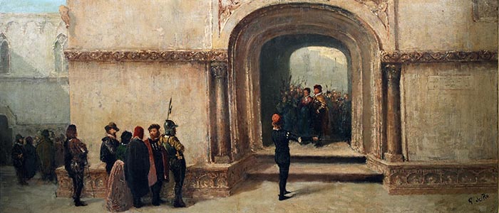 Del Re Giovanni (Napoli 1829 - 1919) La rivolta di Saragozza olio su tela, cm 54x120 firmato in basso a destra: G. Del Re Provenienza: Gall. Bianchi d'Espinosa, Napoli; coll. privata, Napoli Esposizioni: Napoli 1982 Bibliografia: Cat. Asta Bianchi d'Espinosa Napoli giugno 1982, num. cat. 46 bis