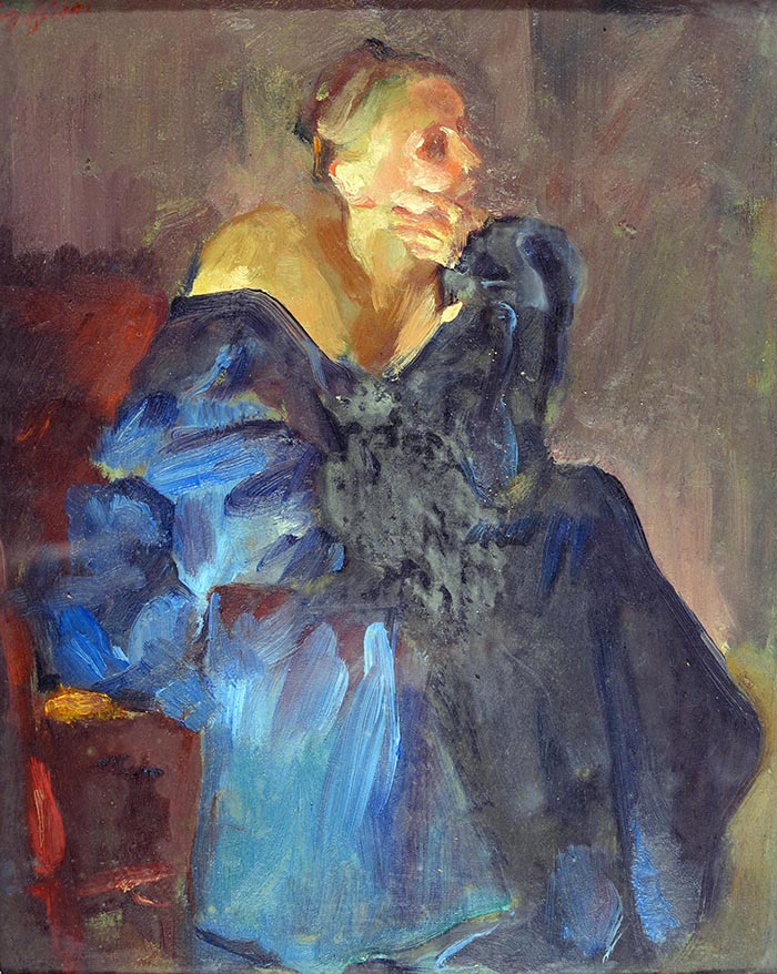 Bresciani Antonio (Napoli 1902 - 1998) Figura seduta olio su tavola, cm 26x20 firmato in alto a sinistra: Bresciani