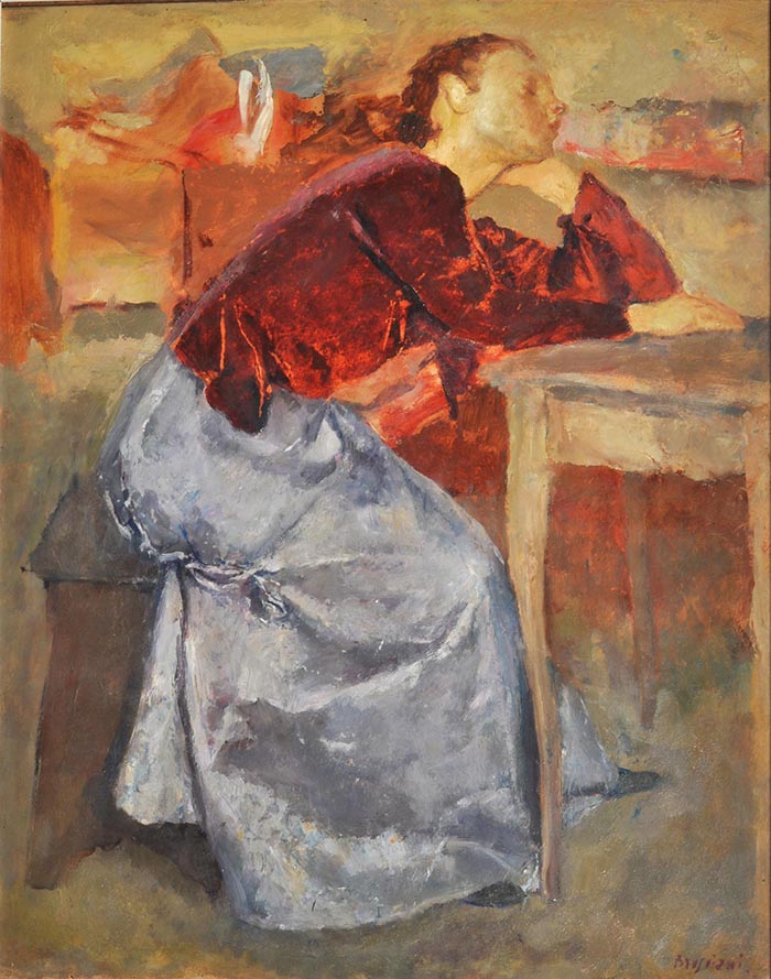 Bresciani Antonio (Napoli 1902 - 1998) La pensierosa olio su cartone, cm 47x61 firmato in basso a destra: Bresciani