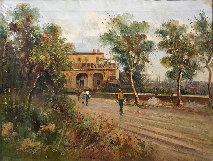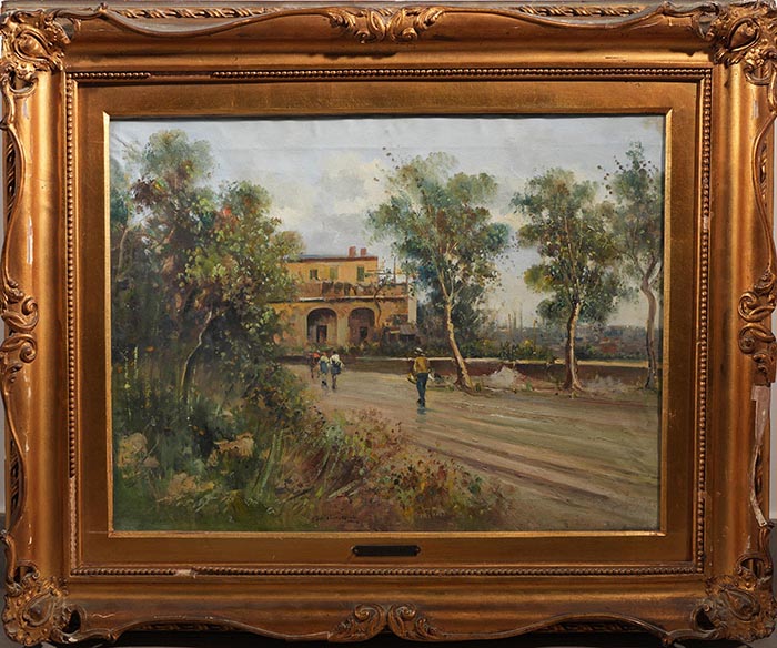 Bertolingrande Luigi (Napoli 1912 - 1965) Strada di paese olio su tela, cm 39x52 firmato in basso al centro: L. Bertolingrande
