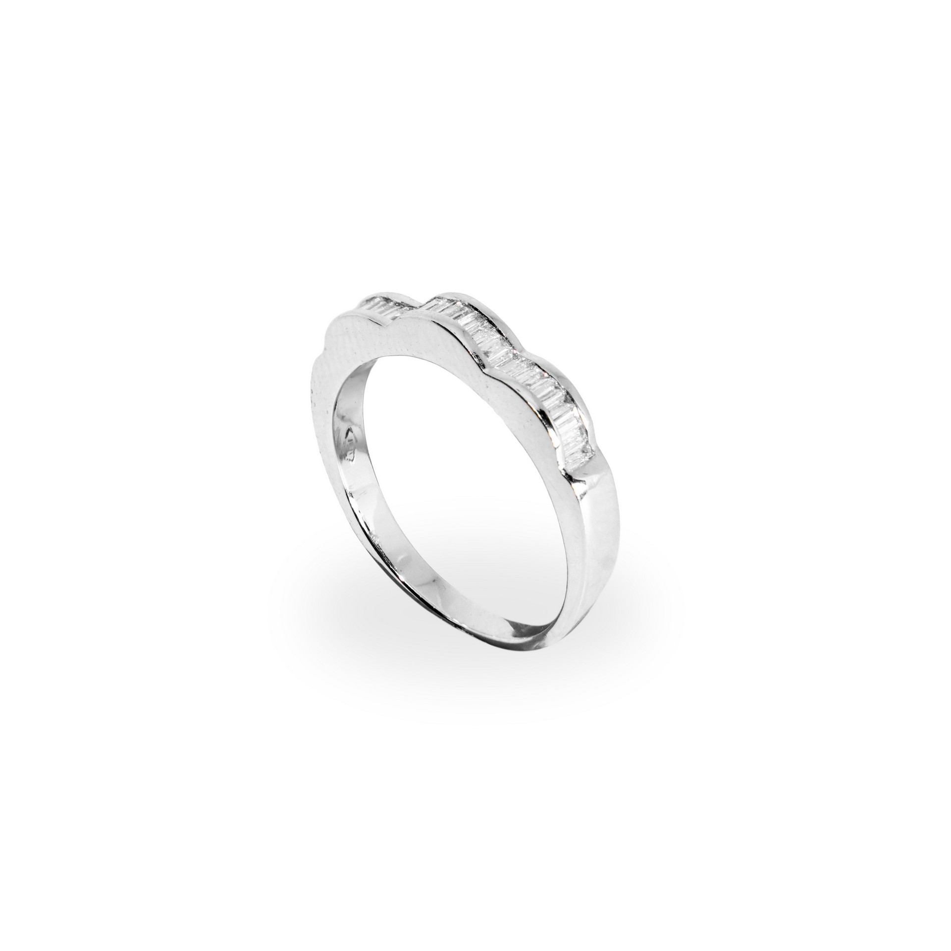 Anello in oro bianco 18 kt con diamanti taglio baguette