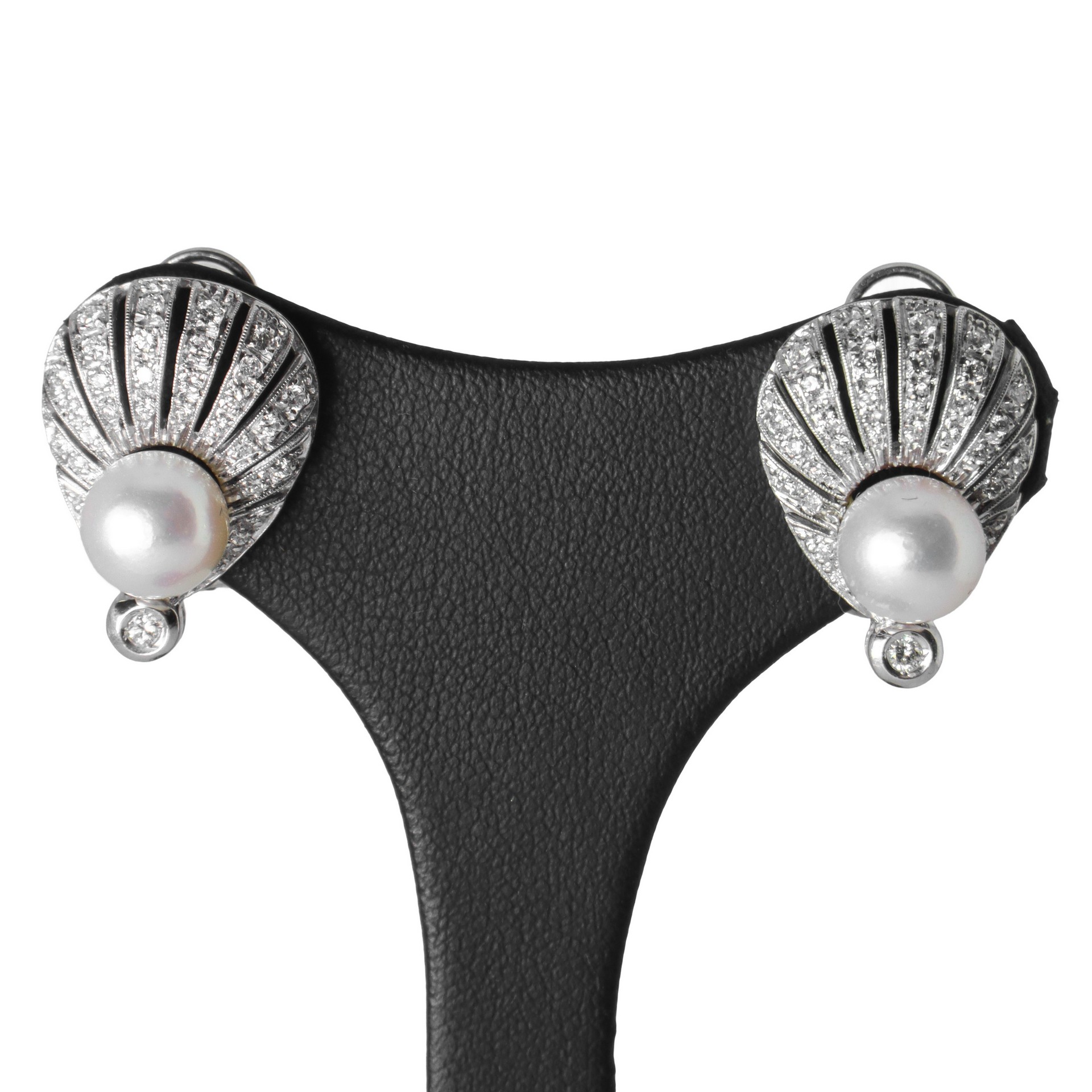 Orecchini in oro bianco 18 kt e perle giapponesi Oro gr 8, peso totale gr 9,80 Brillanti kt 0,68