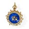 Spilla/Pendentif in oro giallo 750 con smalto blu e decoro floreale al centro