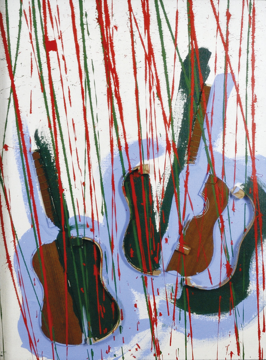 ARMAN FERNANDEZ Nizza 1921 - 2005 senza titolo 2003 ukulele tagliato e acrilici su tela 81x60 firma in basso autentica dell'Archivio Denyse Durand-Duel Parigi nr. Arch. 7962 su foto