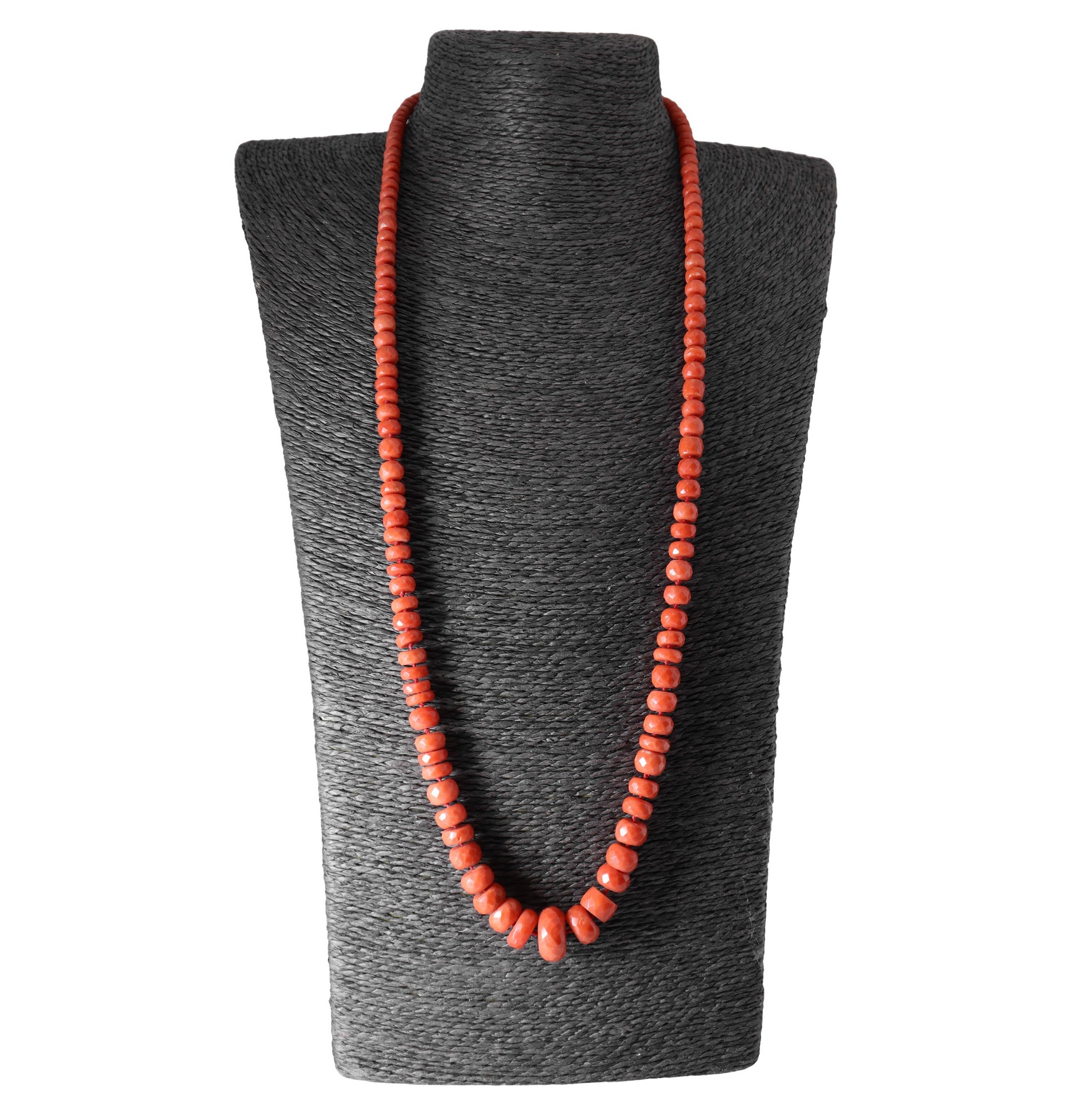 Collana in corallo IN CORALLO DI TRAPANI A RONDELLE SFACCETTATE A DECRESCERE CON SUSTA IN ORO 750 Gr 68,3 , lunghezza 72 cm c/ca Barilotti sfaccettati in gradazione, punzone dell'oro.