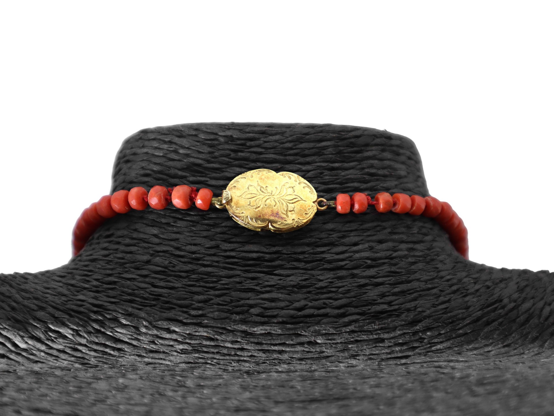 Lotto 115 | Collana in corallo IN CORALLO DI TRAPANI A RONDELLE SFACCETTATE A DECRESCERE CON SUSTA IN ORO 750